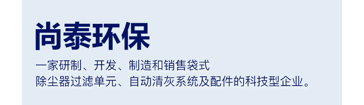 上海尚泰環(huán)保配件有限公司創(chuàng)立于2006年5月,是一家研制、開發(fā)、制造和銷售袋式除塵器過濾單元、自動清灰系統及配件的科技型企業。